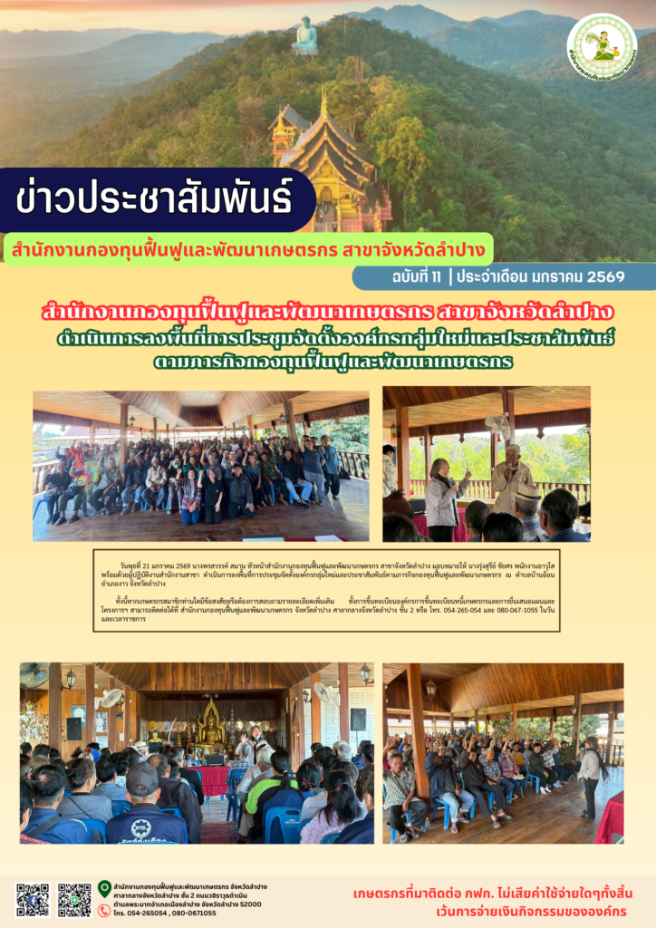 ทั้งนี้หากเกษตรกรสมาชิกท่านใดมีข้อสงสัยหรือต้องการสอบถามรายละเอียดเพิ่มเติม ทั้งการขึ้นทะเบียนองค์กรการขึ้นทะเบียนหนี้เกษตรกรและการยื่นเสนอแผนและ โครงการฯ สามารถติดต่อได้ที่ สำนักงานกองทุนฟื้นฟูและพัฒนาเกษตรกร จังหวัดลำปาง ศาลากลางจังหวัดลำปาง ชั้น 2 หรือ โทร. 054-265-054 และ 080-067-1055 ในวันและเวลาราชการ